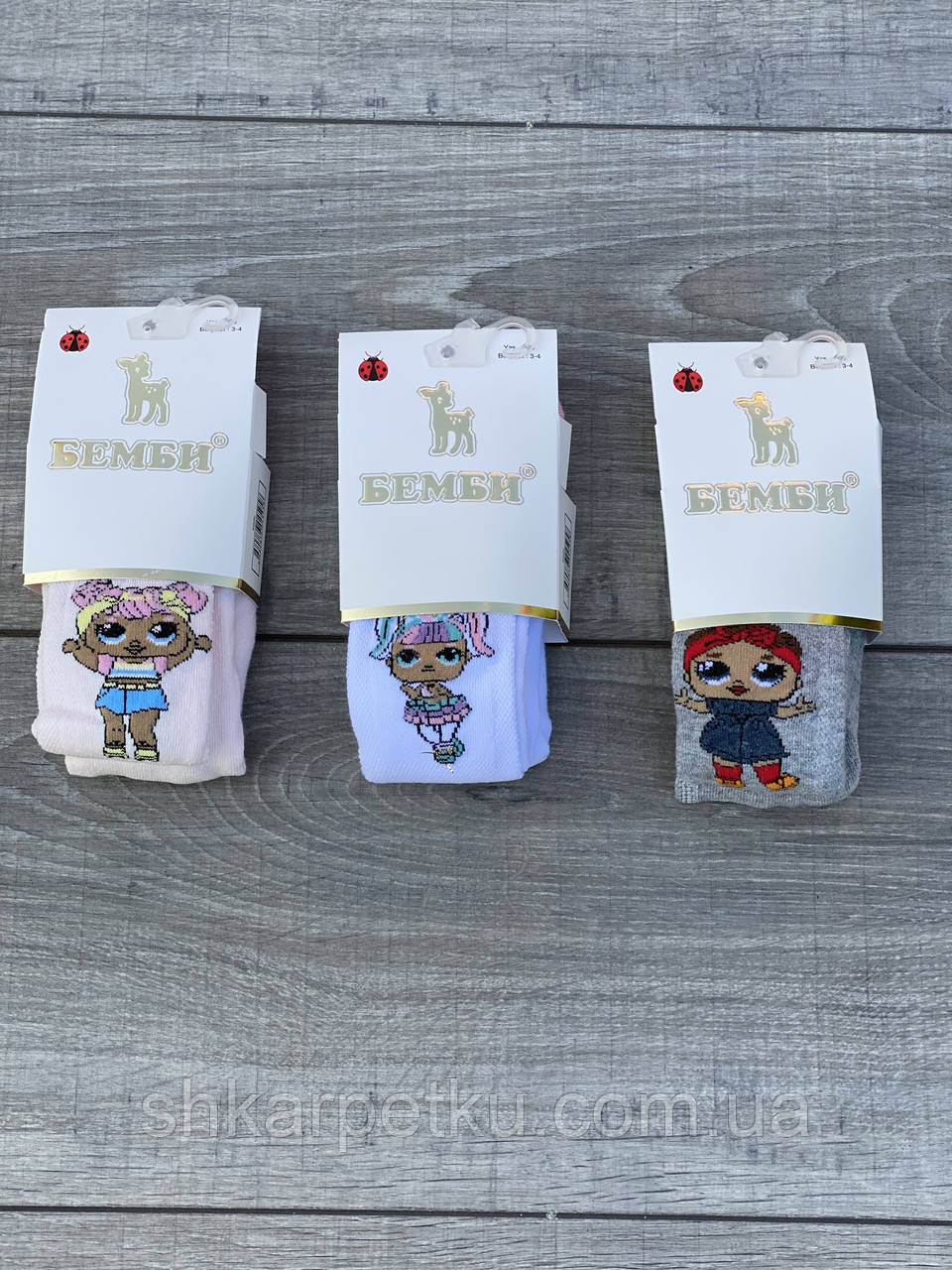 Дитячі колготи бавовна Бембі з ляльками Лол для дівчаток 3 пар/уп мікс 3х кольорів 1 рік