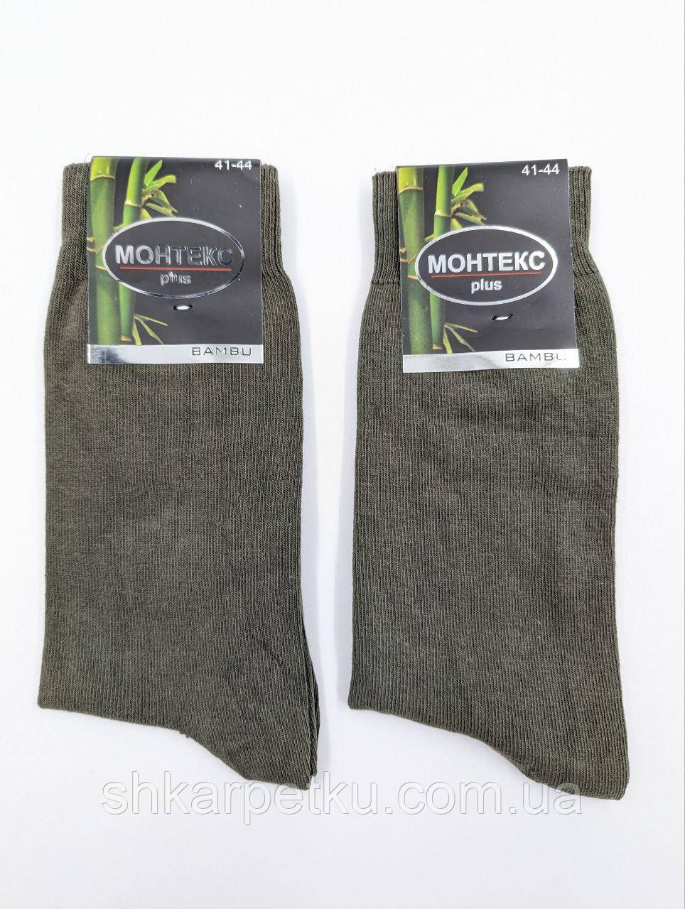 Чоловічі високі Монтекс шкарпетки бамбукові якісні демісезонні без шва , подвійна пята 12 пар/уп хакі
