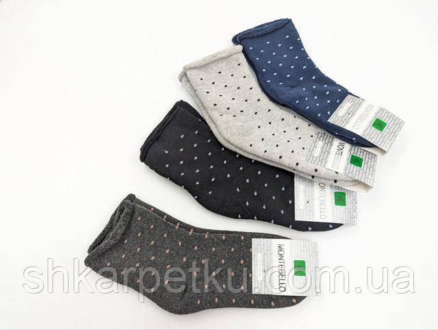 Жіночі махрові шкарпетки теплі Montebello без резинки, в горошок, 36-40 мікс кольорів 12 пар/уп
